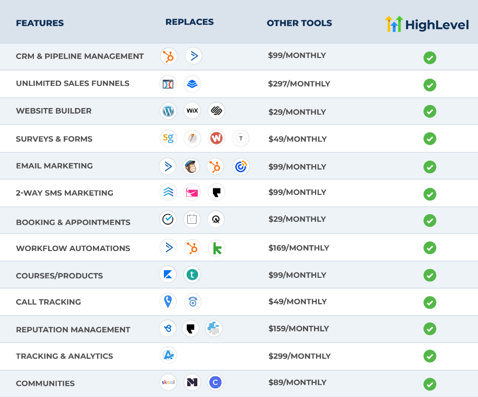 Funnels, CRM, SMS, and email in one platform